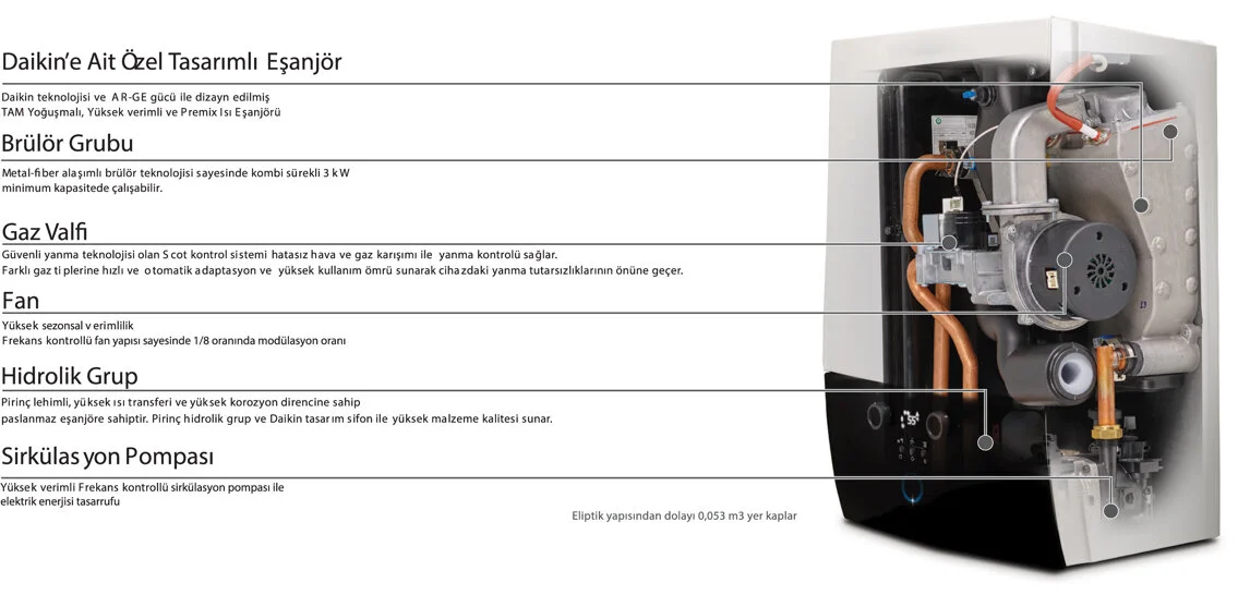 Kendi sınıfında dünyanın en az yer kaplayan kombisini tasarlayan Daikin, Ar&Ge lerinde tasarladığı ısı eşanjörü ile fark yaratıyor.